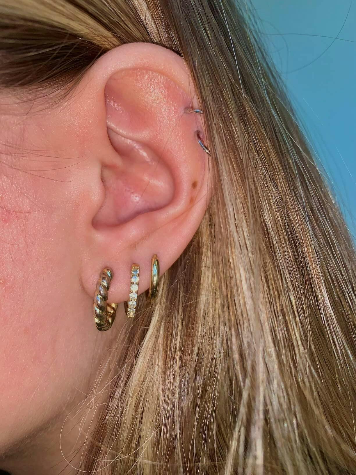 SCENTLL draws its energy from the drive and vitality of its customers. The mini-sized set of gold-colored huggie hoop earrings includes 3 pairs of delicate studs. The smooth Huggies and cubic zirconia Huggies have a diameter of 10 millimeters, while the twisted Huggies have a diameter of 12 millimeters. Fashionably designed, they are suitable for various occasions. Unleash your creativity and craft personalized styles.