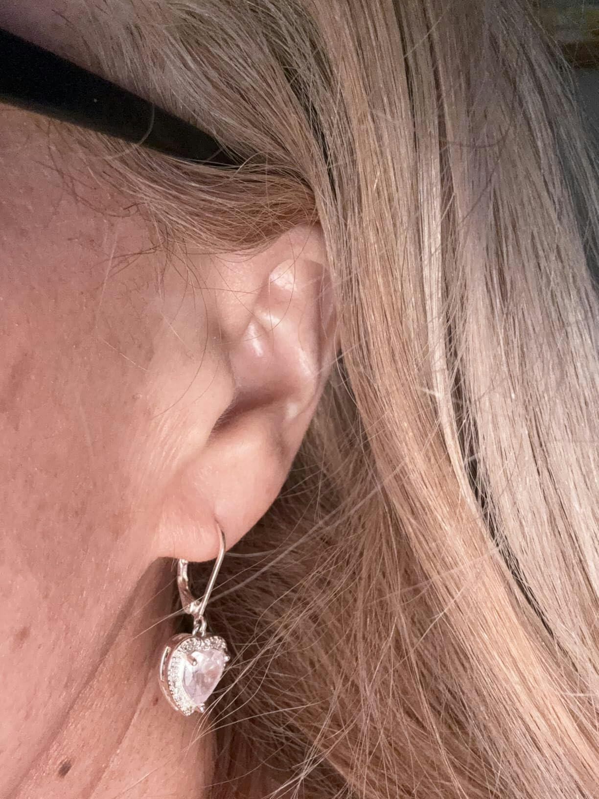 - Design: Elegant Heart Drop, Secure Leverback Closure