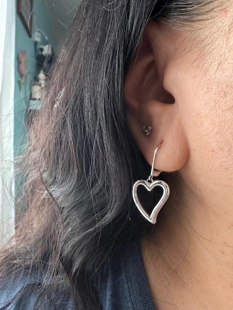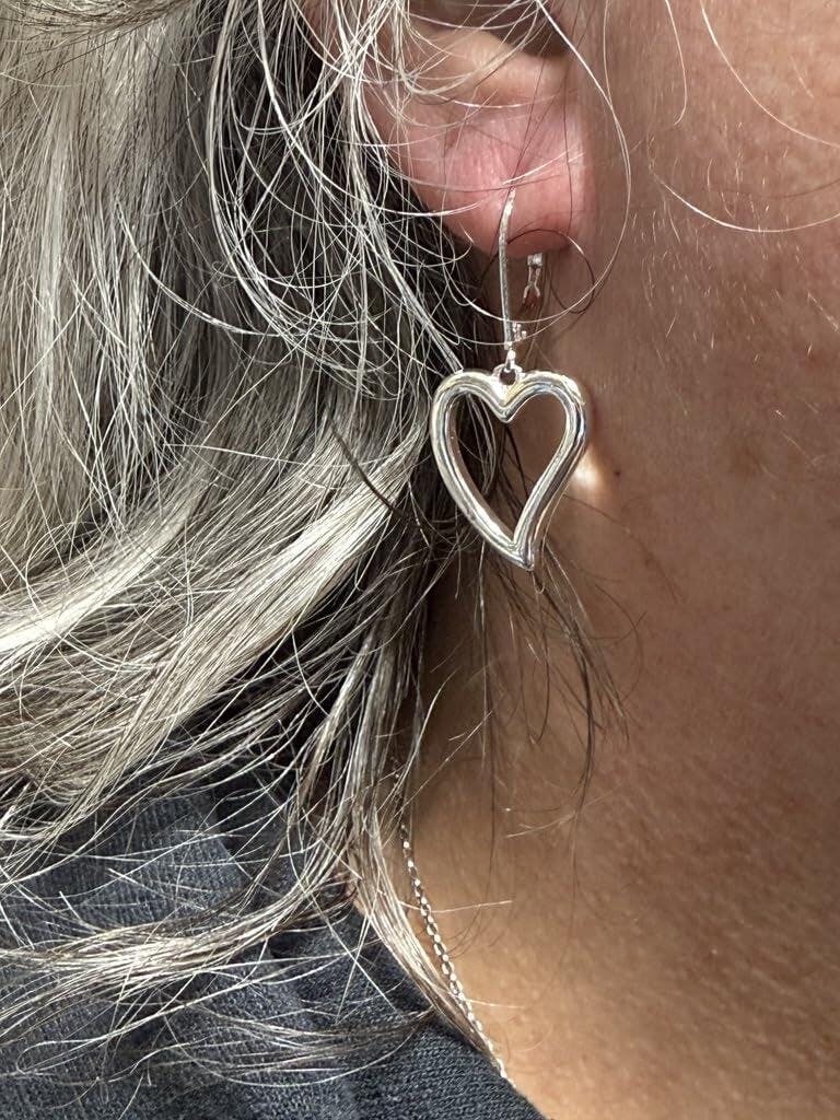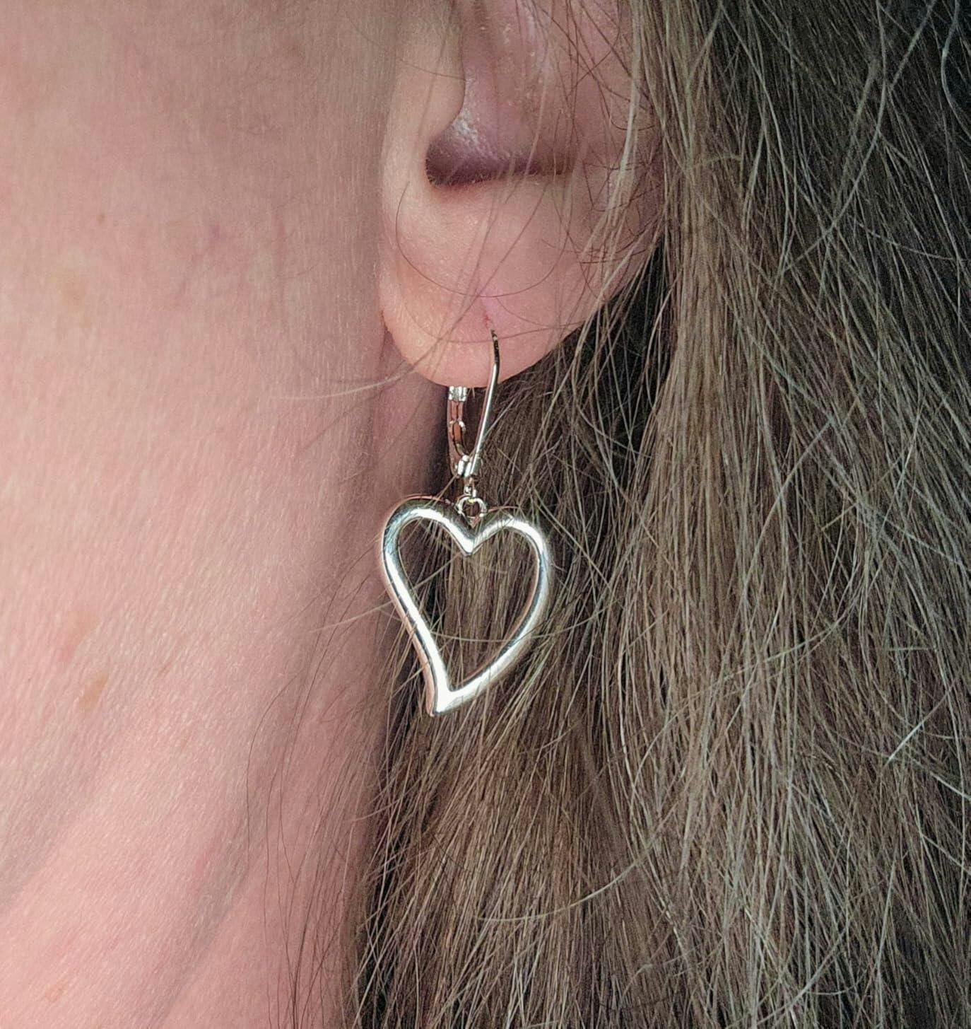 Sterling Silver Heart Dangle Earrings – Hypoallergenic Leverback